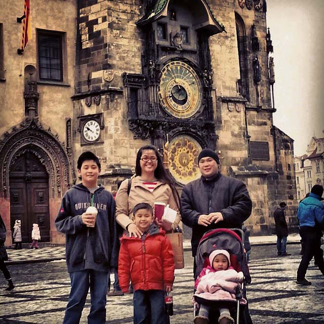 - Courtesy photo Bernice, Tony, Ian, Zian and Ra’ina Toves pose for a photo Feb. 16 in front of the astronomical clock in the old town square in Prague, Czech Republic.