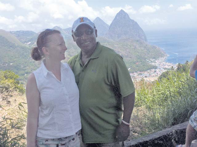 Patrick and Cordula Richards pose for a photo on the Caribbean island of Saint Lucia May 29.