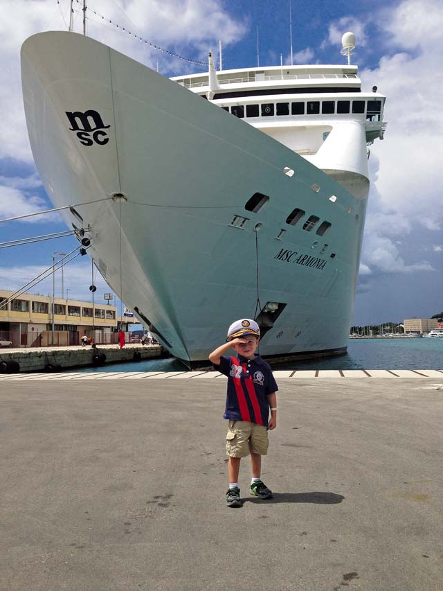Eli Northrip salutes July 31 before boarding the MSC Armonia for a cruise to Croatia.