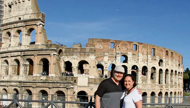 Jack and Stacey Terry pose for a photo in front of the Colloseum May 6 in Rome.