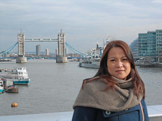Glendalyn Garza poses for a photo on the River Thames near Tower Bridge March 4 while vacationing in London.
