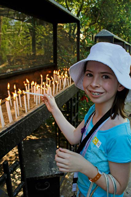 Bella Schott lights candles at the House of the Virgin Mary in Ephesus, Turkey, during a stop on a cruise.