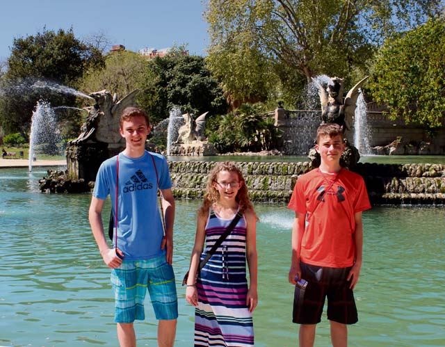 Christian, Trinity and Gabriel Whitesides pose for a photo in front of the fountain in Parc de la Ciutadella in Barcelona, Spain. For decades, this park was the only green area in the city. Today, the park is a main tourist attraction.