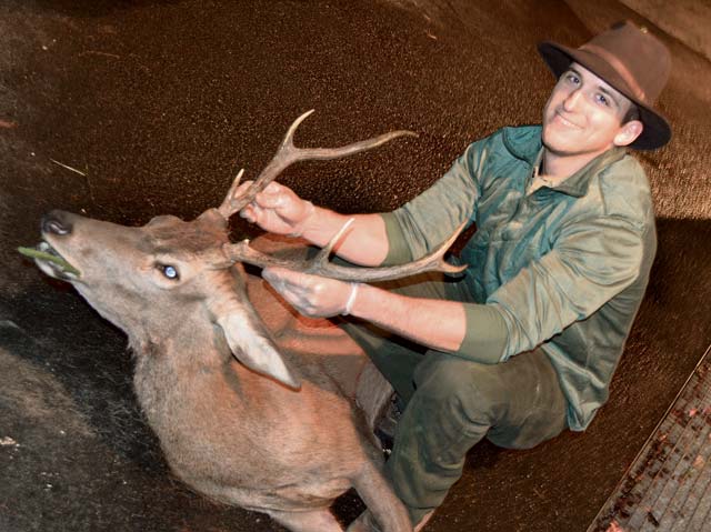 Jared Carlisle shows off his first red stag during a hunting trip in September in Grafenwöhr, Germany.