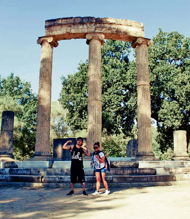 Row, Reena and Zayne Rivera pose for a photo Sept. 24 in Olympia, Greece.