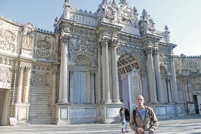 Trenton Hamson poses for a photo in front of the Dolmabahçe Palace gates Jan. 16 during a two-day shopping/cultural trip to Istanbul, Turkey, with his wife, Becky.