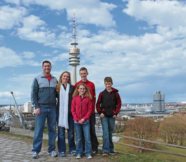 Lydia, Glenn, Andrew and Cindy Porter pose for a photo at the entrance to Oktoberfest Sept. 21 in Munich, Germany.