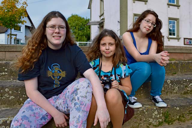 Samantha, Kittana and Cassandra Moore pose for a photo at the “Waschtreppe,’’a local, historic site in Matzenbach, Germany.