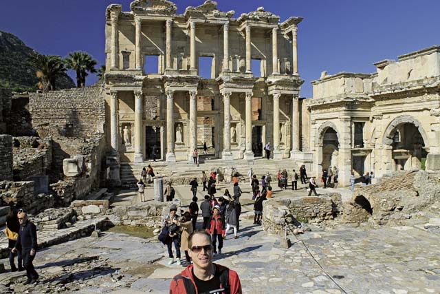 Trenton Hamson poses for a photo Feb. 16 in front of the Celsus Library in the ancient city of Ephesus in Turkey.