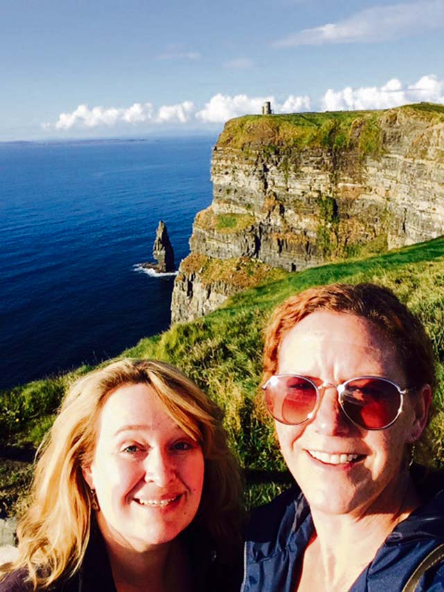 Carmen Schott and Ellen Wirtz pose for a photo at the Cliffs of Moher in Ireland.