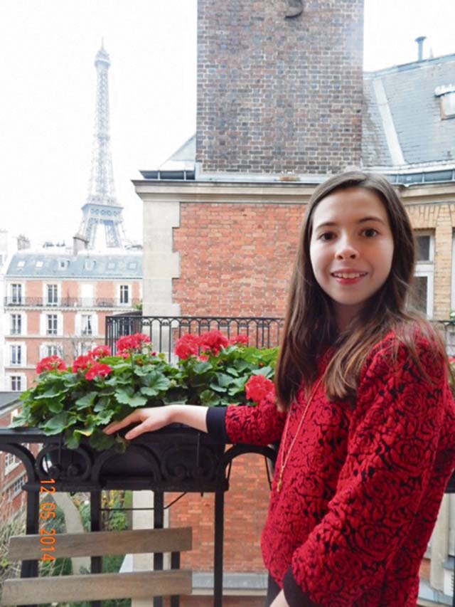 Bella Schott poses for a photo with the Eiffel Tower in the background Dec. 6 in Paris.
