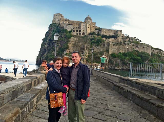 From left, Anca, Leonor and Ryan Alton pose for a photo Oct. 19 on the island of Ischia in Italy.