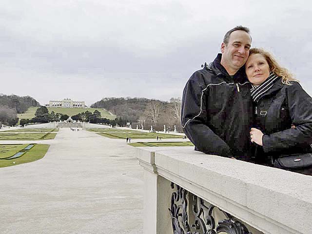 Amy and Mike Dahlhoff pose for a photo behind Schönbrunn Palace Feb. 17 in Vienna, Austria.