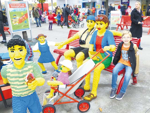 Clayton Buckley poses for a photo alongside a LEGO family at Germany’s LEGOLAND Oct. 20.
