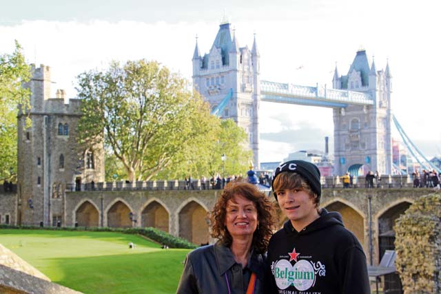 Ben and Donna Davis pose for a photo Nov. 3 at the Tower of London with Tower Bridge in the background while vacationing in London.
