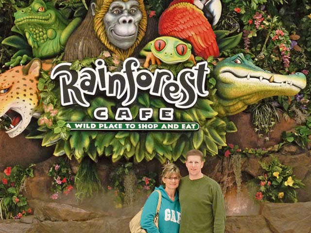 Douglas and Daniela Foote pose for a photo Dec. 26 inside the Mall of America’s Rainforest Cafe in Minnesota.
