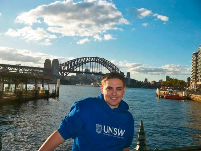- Photo by Kayla Davies Joshua Randel poses for a photo in front of the Sydney Harbour Bridge July 7. Joshua was in Australia for five weeks studying Australian environment, wildlife and conservation through the University of New South Wales (Australia).