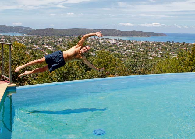 Guy Hrushka jumps into a pool during vacation on Umina Beach Dec. 16 near Sydney, Australia.