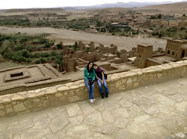 Rebecca Hamson (right) and Haley Miracle pose for a photo Dec. 13 at Aït Benhaddou, Morocco. Aït Benhaddou is a fortified city along the former caravan route between the Sahara and Marrakech in present-day Morocco.