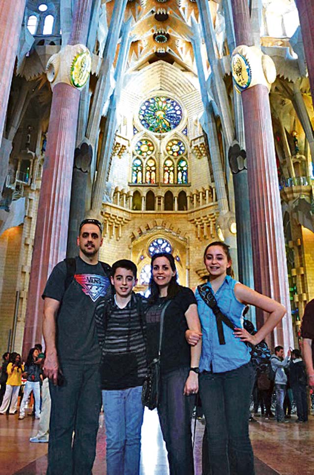 - Photo by Kristin Grant Chad, Jordan, Kristin and Jaycie Grant pose for a photo in the Sagrada Familia April 9 while vacationing in Barcelona, Spain. The Sagrada Familia was designed by Catalan architect Antoni Gaudi. Building started in 1852 and is still not complete.