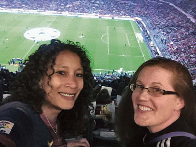 - Courtesy photo Shirlene Oduber and Dawn Frederick pose for a photo in March at the Alliance Soccer Arena in Munich during the semi-finals of the Champions League featuring Bayern against Barcelona.