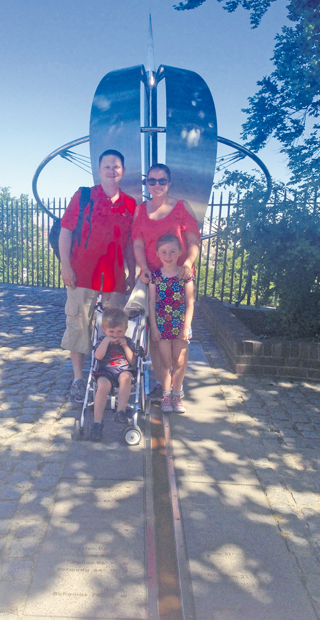 - Photo by Megan Standifer (Counterclockwise) Megan Standifer, Eric Standifer, Logan Standifer and Morgan Standifer pose for a photo June 30 at the Prime Meridian in Greenwich, England.