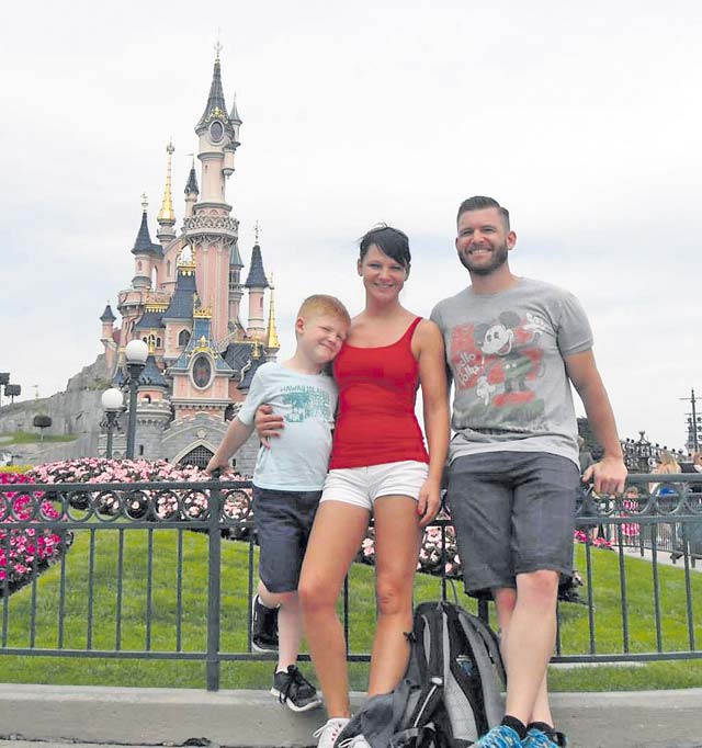 - Courtesy photo Jesse and Tanja Bond pose for a photo with their son Jayden during their trip Aug. 8 to Disneyland Paris.