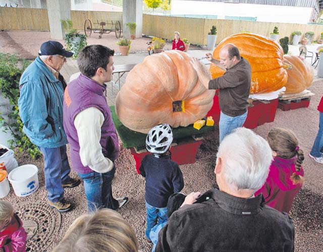 The Gartenschau Kaiserslautern will “slaughter” or break apart pumpkins that won the recent pumpkin weighing championship at 1 p.m. Sunday. Visitors can get parts of the inside pumpkin meat as well as seeds. The pumpkin display under the motto “sports” will continue through Oct. 31, when the park will close. For details, visit www.gartenschau-kl.de.
