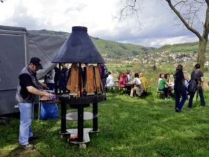 Culinary specialties include barbecue specialties, smoked pulled pork, beef specialties, salmon from the Finish Kota grill, cheese dumplings with leek sauce, bratwurst, fish & chips, ice cream and cakes.