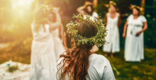 Women,In,Flower,Wreath,On,Sunny,Meadow,,Floral,Crown,,Symbol