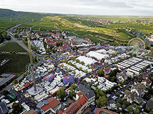 It takes place in the middle of the town, outside the famous giant Wine cask (Dürkheimer Ri-e-sen-fass) — the largest wine barrel in the world, which also houses a restaurant. The festival is reminiscent of a Weih-nachts-markt, with fair-ground rides and many food stalls being temporarily installed for the event.