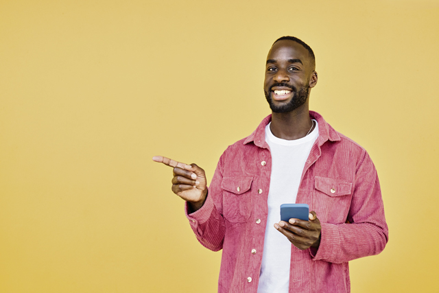 Young,Happy,African,American,Black,Hipster,Man,With,Cellphone,In