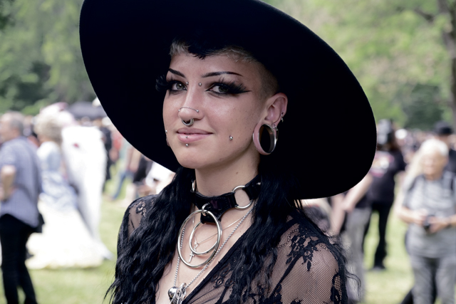 Young,,Smiling,,Female,Goth,In,Black,Outfit,On,The,Annual